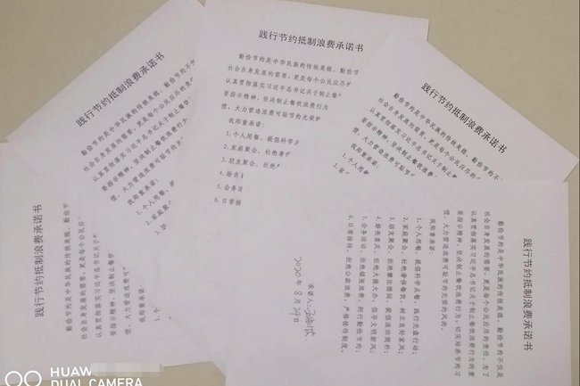 公司黨支部和工會(huì)向全體黨員干部職工倡議:一是增強(qiáng)政治自覺,自覺把厲行勤儉節(jié)約、反對鋪張浪費(fèi)的理念內(nèi)化于心、外化于行;二是帶頭做好表率,嚴(yán)格執(zhí)行公務(wù)活動(dòng)用餐標(biāo)準(zhǔn),在家庭傳承勤儉節(jié)約的傳統(tǒng)美德,樹立良好家教家風(fēng);三是強(qiáng)化宣傳引導(dǎo),樹立科學(xué)飲食、理性消費(fèi)新理念,養(yǎng)成崇尚節(jié)約、厲行節(jié)約的良好習(xí)慣,堅(jiān)決抵制“舌尖上的浪費(fèi)”。